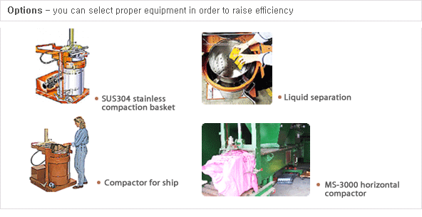 - Largely reduce waste treatment cost and compacting rate of max. 1/10(90%)