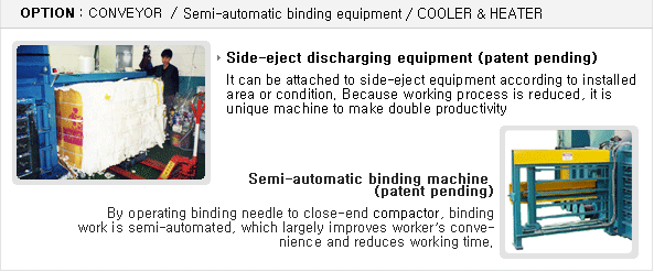 Horizontal semi-automatic compactor its mid-sized compactor to treat max. 20tons per a day by 20~30HP capability, which is practical multi-purpose compactor to can treat various waste materials.