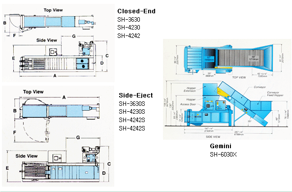 Himssen closed-end baler has general straight-type structure and side-eject baler and Gemini baler in utility model are special machine types having improved working process as well as being suitable for narrow space.