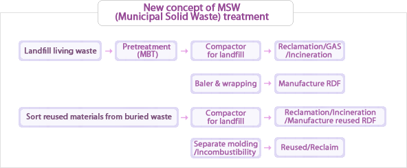 - Perform molding after filing up waste by 3-layer by compacting and binding it